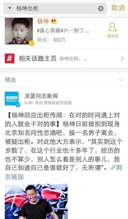 关键词我帮大家提取一下:杨坤现身北京某gay吧,结束之后,杨坤载着一名陌生男性开车离去~