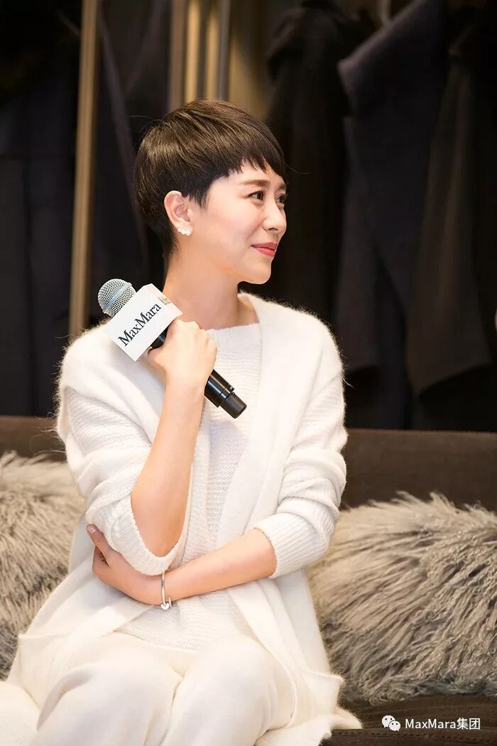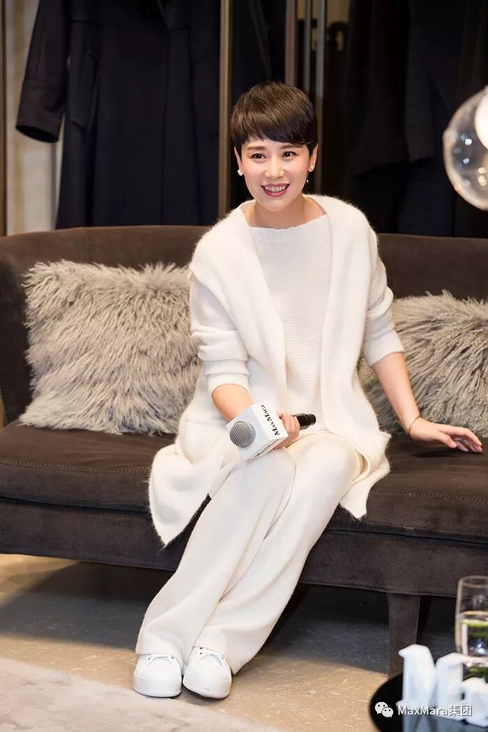室内的暖气吹得厉害,海清一袭白色针织,清新优雅如女主人一般,在Max Mara的明星会客厅和大家话着家常。