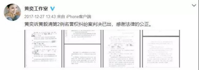 在今年3月份黄奕起诉黄毅清名誉侵权案的二审过程中,黄奕甚至当庭哭诉:黄毅清所有的用词,用在一个正常的女人身上都是不能承受的。