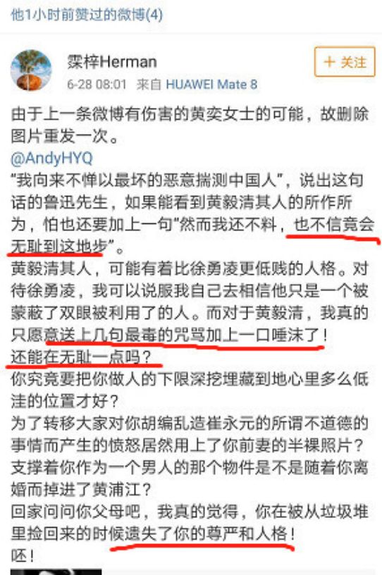 都说好的前任应该一别两宽,看来这么文艺的做法不适合黄毅清。在他这里只有你死我活。