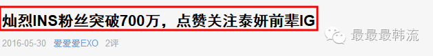 大概在五月底,朴灿烈的INS粉丝数突破了700万,同时他关注了公司的前辈金泰妍↓
