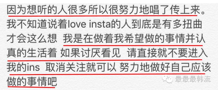 ——我唱这首歌只是因为粉丝想听我唱而已,如果真的那么讨厌我,取消关注就可以了,如果可以的话努力做好自己吧。