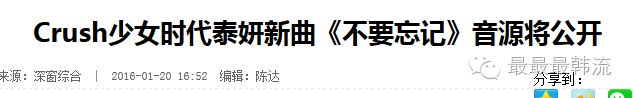 之前泰妍不是给Crush的新歌《不要忘记》做了feat嘛↓