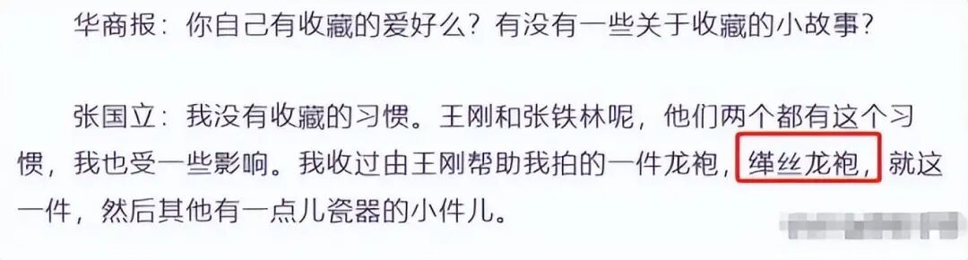 除此之外,张国立还酷爱收藏,各种茶叶都是顶级的珍品,更有一件顶级的手工龙袍,价值不菲。