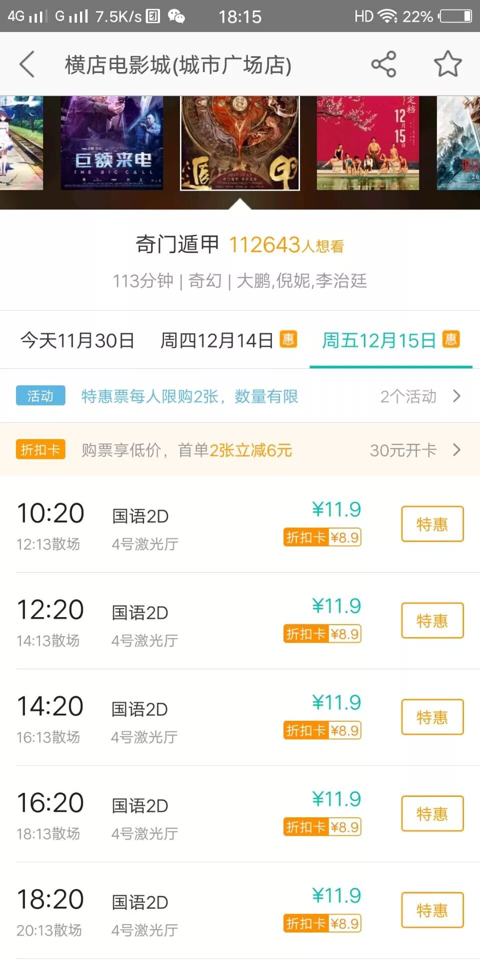 美团特惠11.9元/张