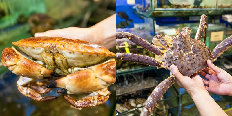 ▶基围虾、面包蟹、皇帝蟹、波士顿龙虾◀