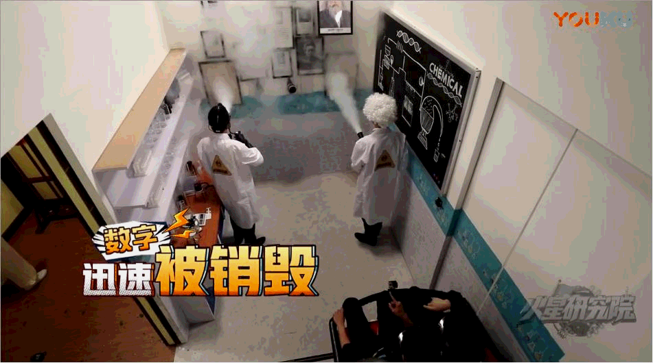 然后第三扇门打开,写满化学方程式的实验室,数字还没来得及看清就迅速被灭火器遮盖。