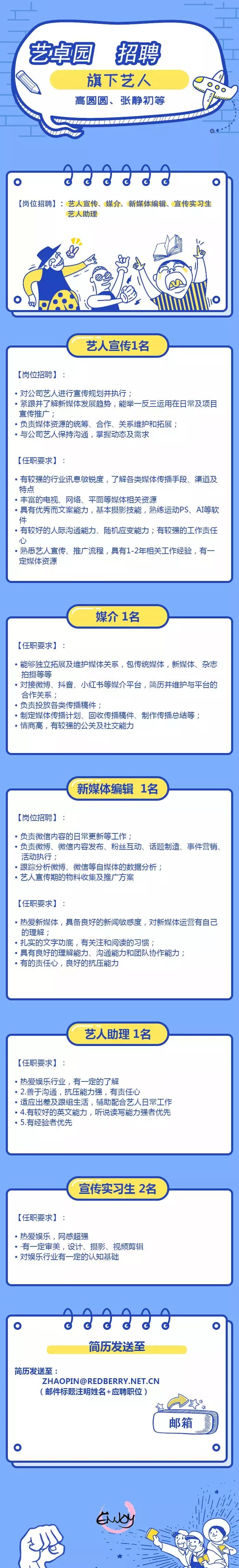 高圆圆、张静初经纪公司招聘艺人宣传、艺人助理、新媒体编辑等职位!(北京) 传媒招聘第1站 内地女星 2019-02-19 22:45:18 710 创作不易,用心坚持,欢迎请BaGua喝几杯爱心咖啡!打赏并支持本文 打赏并删除本文 艺卓园 创作不易,用心坚持,欢迎请BaGua喝几杯爱心咖啡!打赏并支持本文 打赏并删除本文 感谢您的支持鼓励,我会继续努力的!文章地址:用户邮箱:打赏金额:USDT 请输入数字点击”去打赏“,即可进行打赏支持本文章哦 张静初 About the Author 传媒招聘第1站 功能介绍:发布传媒影视圈大小招聘信息 Related Posts 高圆圆、张静初经纪公司招聘艺人宣传、艺人助理、新媒体编辑等职位!(北京) 2019-02-19 22:45:18 发表评论