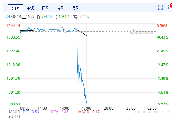 在中国发布反制措施后,美国农产品期货全线大跌。美国玉米跌3%、大豆跌3.3%、小麦跌1.7%、豆油跌1.8%、豆粕跌2.9%。活牛跌1.2%、瘦肉猪跌5%。美豆期货短线跌超5%。标普500股指期货下跌0.7%。