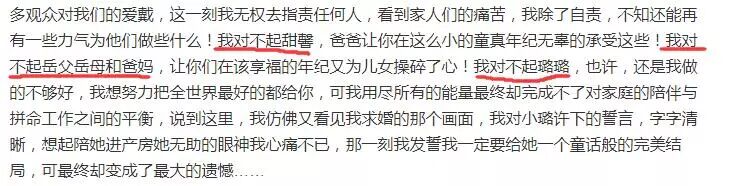 第二:自动认错,把责任揽在自己身上,方便向女儿甜馨,父母,李小璐道歉;符合危机公关“承担责任原则”,这个承担责任就高明了,本来是自己妻子的错,自己却出来承担责任,把人生格局提升了一个level,这样既顺应此前媒体一致的“爱得卑微”的主旋律,又待李小璐这个事件发了声明,给了公众一个交待,保住了李小璐,打亲情牌,最后还留下了“离婚”的暗示,顺应了网友的猜测,以柔克刚,字眼温和间却化解了满腔怒火,令网友粉丝再想再喷都觉得自己没素质了。