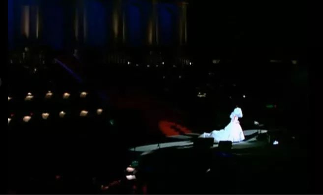 她穿着洁白婚纱,宣布将自己嫁给了音乐,嫁给了舞台。然后献上一首《夕阳之歌》,叹“斜阳无限好,无奈只一息间灿烂……”