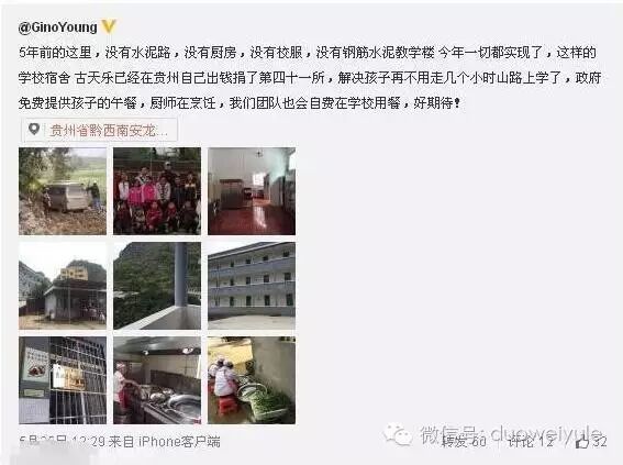 没有炒作,没有虚伪,有的只是一颗真诚的热心。繁忙的演艺日子里,他总时刻记挂着孩子的家园,一所又一所的学校低调地拔地而起!