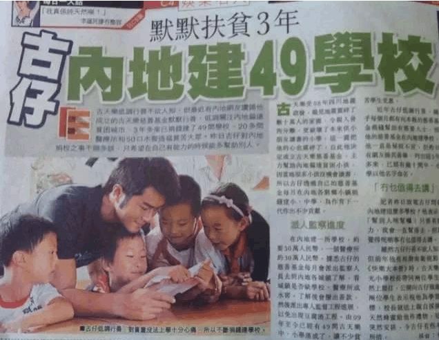 截至16年底,古天乐慈善基金会在内地捐建的学校和教学楼超过了98所,但是对于自己慈善,古天乐一直都是相当低调,从不结束采访。