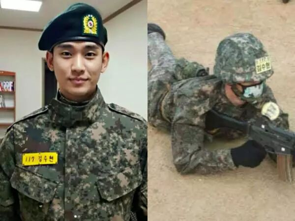 演员金秀贤以《来自星星的你》晋升男神宝座,2017年10月以现役士兵身份入伍,预计在今年7月退伍。他穿起帅气迷彩军装,展现十足男子气慨魄力,被赞「连当兵都像在拍画报」。近来金秀贤在军中的照片再一次曝光,但他完美隐藏在军人群中,被称「找得到的是真爱」。