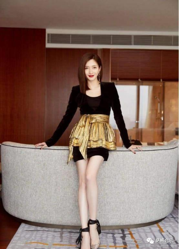 再者裙子设计采用不规则设计,斜向造型非常时尚,露出更加纤细修长的“豆腐腿”。江疏影的身材和气质都很出色,而且这次的搭配也很完美。她头上戴着肉丸,脚上穿着一双金色高跟鞋,可爱又俏皮,这让她的腿更高更细,让她的腿看起来更好看。耳朵上戴一对精致的流苏耳环,为整个造型增添了更多突出的亮点。