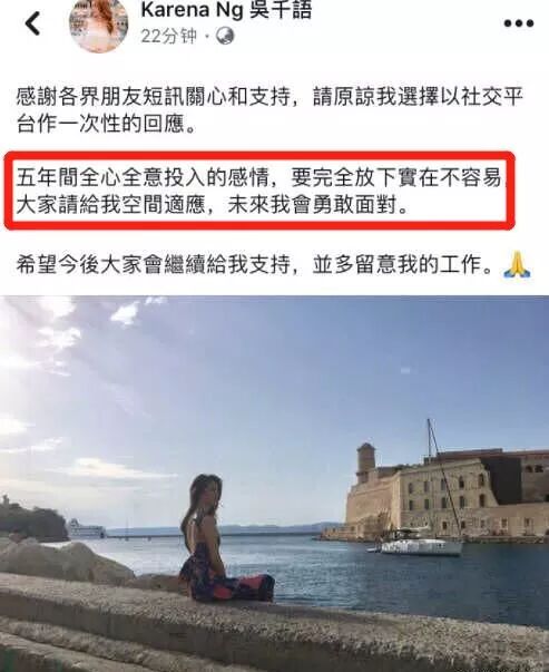 当时吴千语表现得很伤心,“五年间全心全意投入的感情,要完全放下实在不容易,请大家给我空间适应,未来我会勇敢面对。”