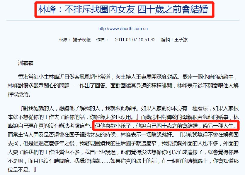 林峯曾说过要在40岁之前结婚,他也确实在距离40岁还有两个月时领了证。