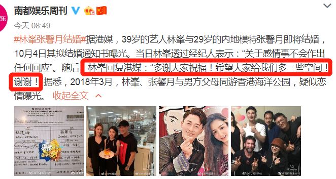 他也回复媒体,承认结婚一事,并感谢大家的祝福。