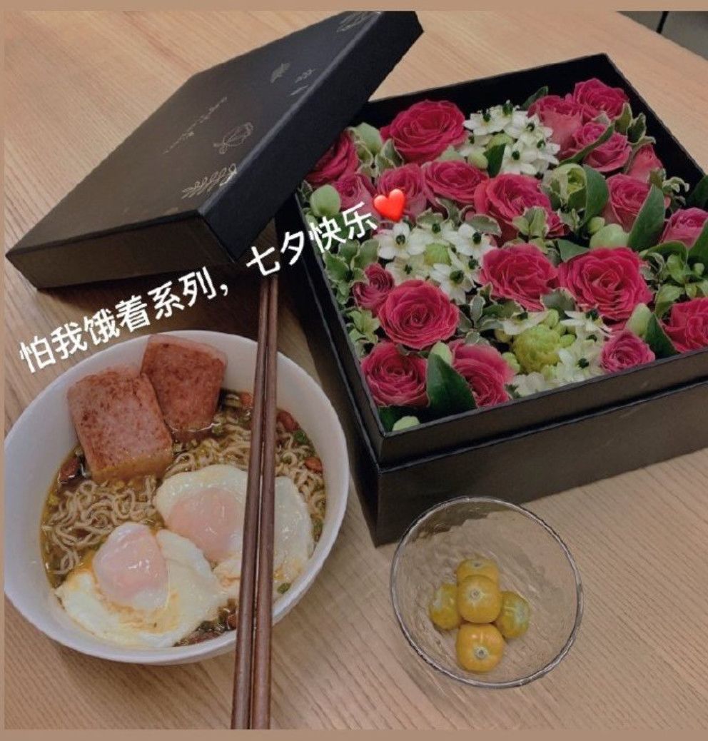 今年七夕,张馨月特意晒出林峯给自己做的爱心宵夜和花,难道那个时候就已经求婚成功了?
