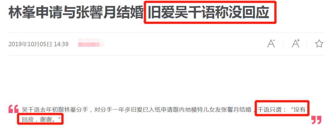 今天林峯被曝结婚,度假中的吴千语也只淡淡说了一句,“没有回应”。