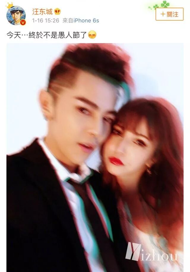昨天,汪东城突然在微博上发了一张和某位女孩的合影,并配文“今天...终于不是愚人节了”,疑似公开恋情。