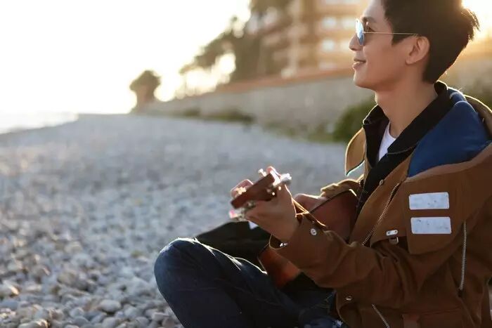 拿出刚从新朋友Mancl店里借来的吉他,吹着海风弹着吉他,这个感觉超级棒。