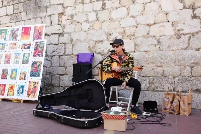 在街头,我看见了一个流浪歌手,