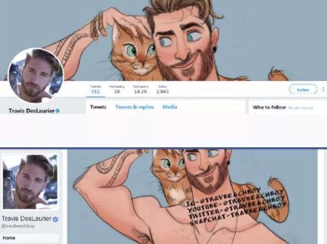 事实上,Travis是个彻彻底底的猫奴,就连FB的封面都是他和Jacob的漫画...
