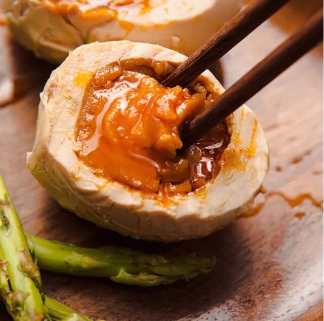 精选来自广西北海红树林的海鸭蛋,由十年以上老师傅用古法腌制,经过前期的严格检验挑选后,每只海鸭蛋个头饱满,口感特别香郁,经过传统腌烤后,自然出油,香气四溢。切成两瓣后,看着鲜红的油汁缓缓流动,你简直恨不得手里赶紧有一碗粥。