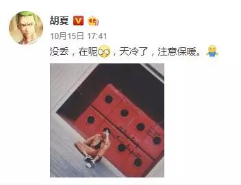 随着天气转凉,暖男胡老板在微博向所有虾米发出了防寒问候,在线叮嘱大家注意保暖。