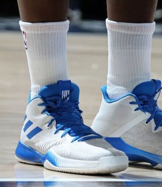 印象中,adidas在为NBA球员设计PE Logo或是专属标记这件事儿上,总是喜欢化繁为简。和他们的竞争品牌不一样,adidas旗下的非签名鞋系列代言人们球鞋上的标识,经常统一为简单的姓名缩写字母和背号。当然这样的做法,在Under Armour的一些签约球员的上脚中,也有所体现。或许,这样整齐划一的设计概念,是“TS时代”给予adidas一种定向思维的产物。