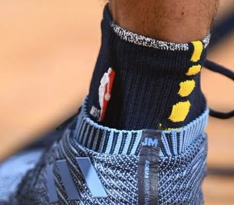 也不知道像这样挑战视觉极限的小PE Logo和个人专属标记,是不是目前这支掘金队的“传统”……反正像“二年级生”贾玛尔·莫雷这双adidas Crazy Explosive上的“JM”字母缩写……真是……还能再小点么?!