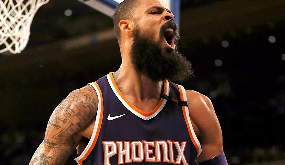当然,最直接的原因还是因为,来到太阳后钱德勒更换了自己的背号,所以此前带数字6的个人Logo显然是不能再用了。取而代之的是和队友布克一般统一的细字体TC4 Logo,这多少和钱德勒一贯给人的粗犷猛男形象有一些违和。