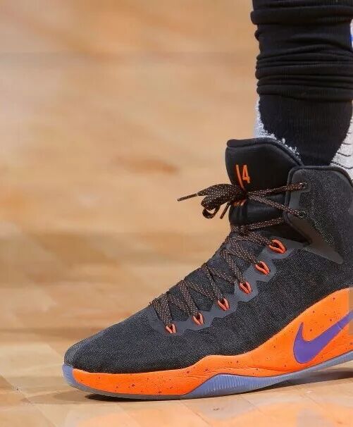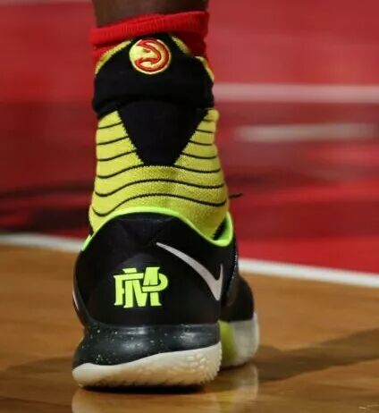 本赛季转战掘金,“米神”的新球鞋Nike Zoom Shift上,仍然有着这个”PM” Logo,只不过……这笔者就要吐槽一下米尔萨普了:您这新鞋上的PE Logo……简直是生命中不可承受之“小”啊!