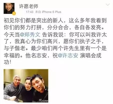 2007年,郑秀文的复出演唱会,她第一个邀请了许志安,她说她想要许志安见证自己的改变。
