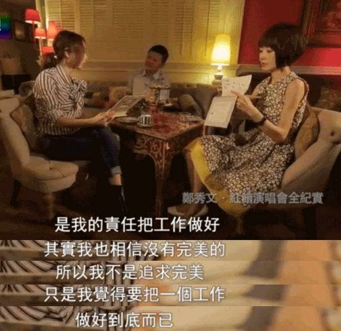 郑秀文说:“我的责任就是把工作做好,我也相信没有完美,所以我不是在追求完美,只是我觉得要把一个工作做好到底而已。”