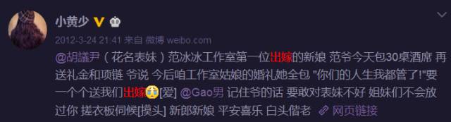 12年,化妆师胡议尹结婚的时候,范冰冰包了30桌酒席,还送礼金和项链。