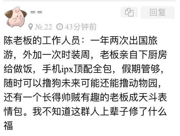 还有人爆料陈学冬的工作人员:一年两次出国游,外加一次服装周,手机顶配,假期还长...(我看不下去了,陈老板还缺人吗?)