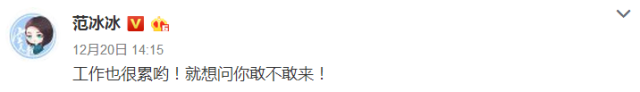 昨天,范爷对此事做了回应,表示:“跟我工作也很累哟!就想问你敢不敢来!”范爷回应也是霸气十足!