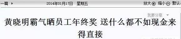 2015年,黄晓明也发出了百万年终奖,还说“送什么都不如现金来的直接”,让员工好好地感受了一把人民币的味道!