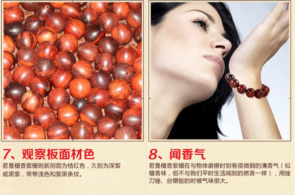 这种方法一般初学者不是很容易就能掌握的,用小刀或者砂纸打磨一下木材表面,小叶紫檀有淡淡的微香,如果香味太浓或者基本没有那也不靠谱。市面上常见的大叶紫檀是酸香味,气味比小叶紫檀浓。