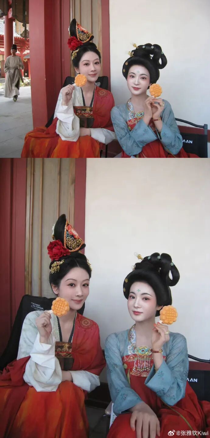 第一次出演唐朝戏,搭档如此豪华的班底,让张雅钦觉得压力很大,好在导演给了她许多鼓励。进入剧组之后,张雅钦发现这是全员夸夸的氛围。尤其是她崇拜的杨紫姐姐,更是给了她非常多的肯定和鼓励。