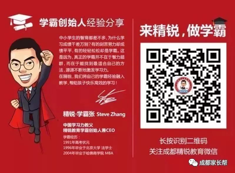 【成都家长帮】是立足于成都中心城区K12段垂直教育领域的“互联网+教育咨询”的服务平台。关注我们,解决教育问题,不做迷茫家长!
