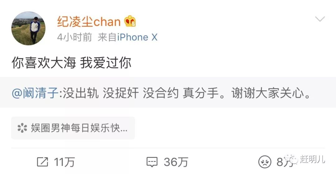 这一天我收到的各种推送都是关于阚清子分手的消息,对于这个女明星其实我不太熟悉,于是乎上了微博看了一下关于她的信息。