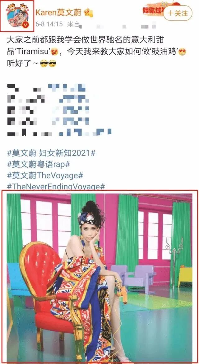 日前,莫文蔚发布了粤语单曲MV《女性新知2021》,没成想却“翻车”了。有细心网友的发现,在新歌的MV当中,莫文蔚身穿的是杜嘉班纳(D&G)品牌的长裙,摄了多组造型图片,成为了第一位穿该品牌的明星。此外,莫文蔚之前还把自己的社交媒体的头像换成了身着该品牌服装的照片。