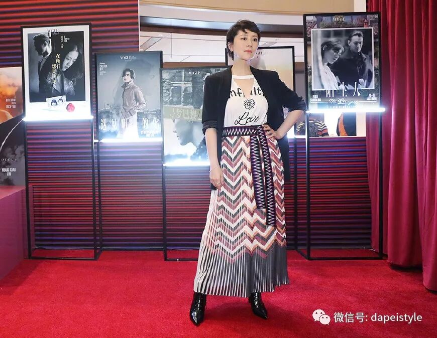 话说海清当天这身造型,说简单也简单,说不简单又到处都充满着细节,仅从服装配色上来看,就既有简约的黑白配还有俏皮的锯齿状撞色印花,乍一看就显得非常精彩。