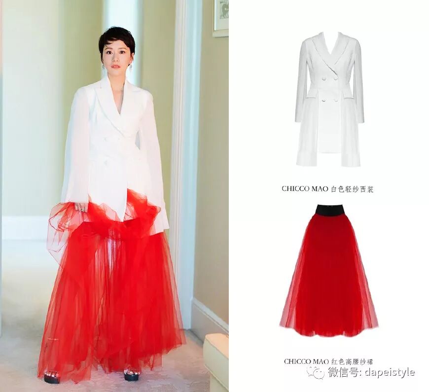 海清在活动上穿的这件红色网纱半身裙可以说是相当惊艳的存在了,上搭纯白色西装缓和视觉,大有一半是海水一半是火焰的感觉,谁说白玫瑰和红玫瑰不能兼得?