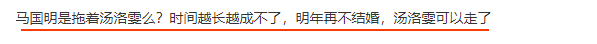 但也有相当多的人嘲笑汤洛雯倒贴一头热,说马国明根本不想结婚只想拖着女方。