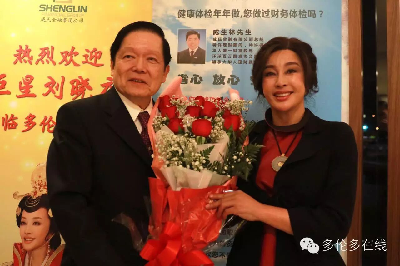 咸夫人是刘晓庆影迷,赠送鲜花并合影留念