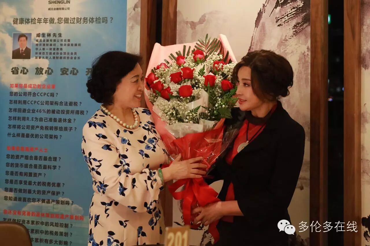 座上宾加拿大联邦参议员胡子修先生向刘晓庆女士赠送鲜花